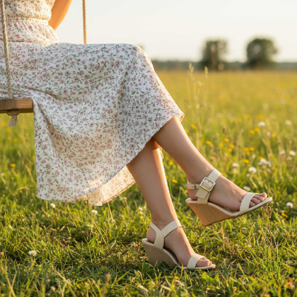 Lindo modelo de sandalia anabela para mulheres com pés grandes. Compre já a sua!